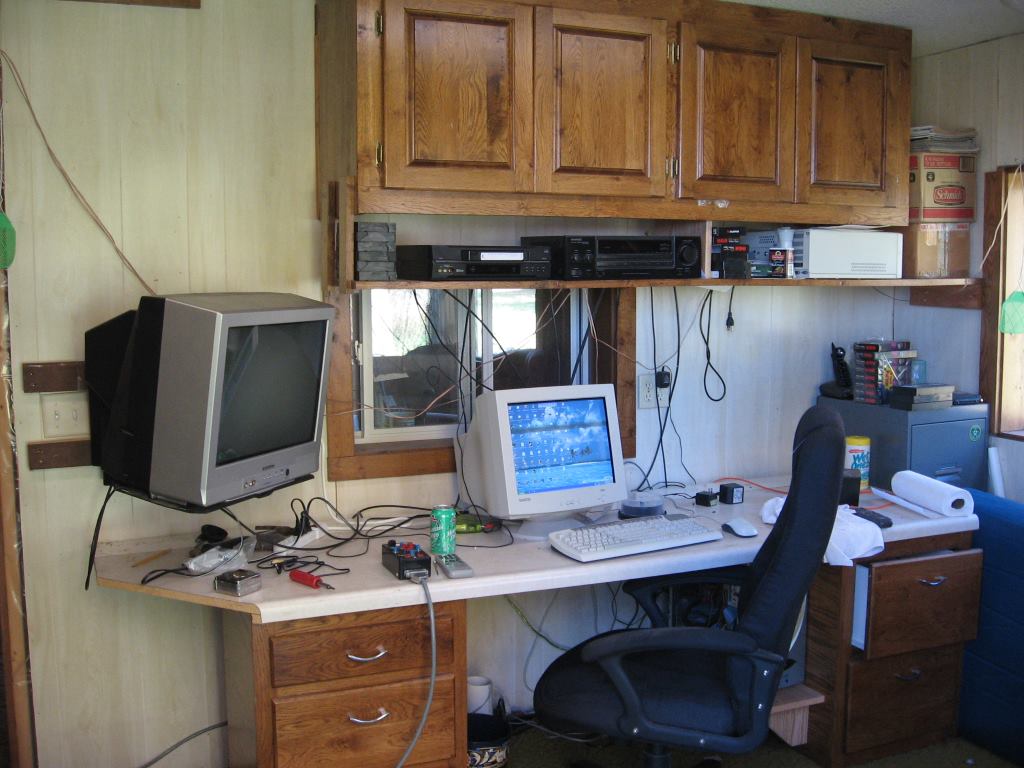 Inside the 8X16' warm room complete with TV, stereo, VCR, Computer, Fridge, microwave, air conditioner, hide -a-bed couch.